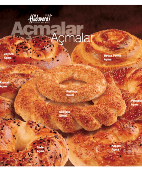Zeytinli, Patatesli, Sade,Kaşarlı, Peynirli, Kıymalı, Beyaz Peynirli, Pastane Simiti, Sosyete Simiti
